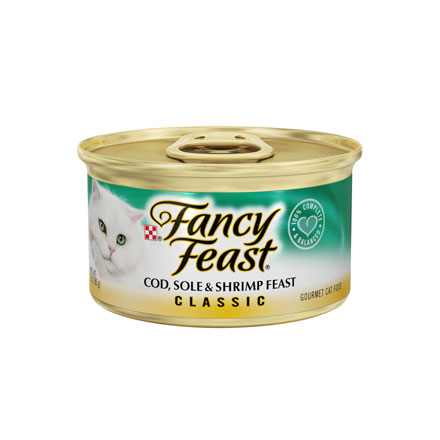 Fancy Feast דגי קוד, סול ושרימפס, מזון לח מכל מטעמי הים, המעניק לחתולים 100% תזונה מלאה ומאוזנת לצד ארוחת גורמה במרקם עשיר ומפנק במיוחד, כמו שחתולים אניני טעם אוהבים!